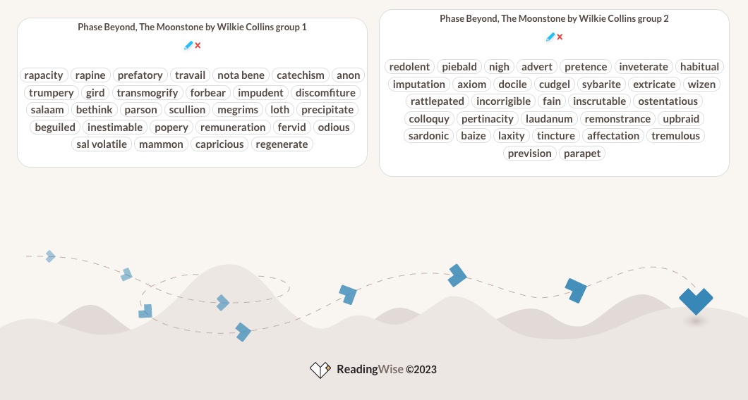 Delve into the captivating world of "The Moonstone" by Wilkie Collins. This mesmerizing work of fiction takes you on a thrilling journey as a stolen diamond unravels a web of secrets, deception, and unexpected turns. Collins' meticulous storytelling and vivid characters paint a vivid picture of intrigue and suspense. Discover the words from "The Moonstone" that we've added to ReadingWise Vocab now!